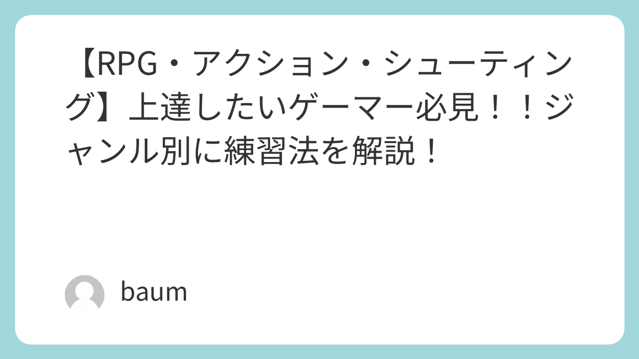 今回はゲームの進行や上達に悩むあなたにジャンルごとに練習法とコツをお教えします!